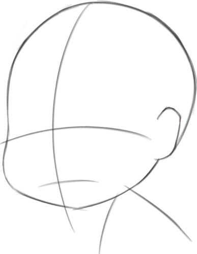 首先用简单的线条勾勒出头部外形轮廓,注意侧面角度只能看到一半的脸。