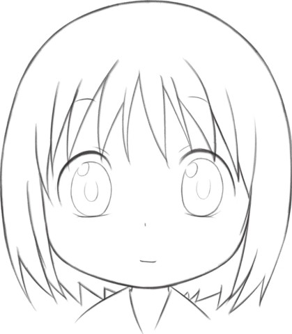 在上一步骤的基础上,绘制出人物的发型样式和五官样式;注意发际线的位置要正确,过高或过低都会让人物看起来很奇怪。