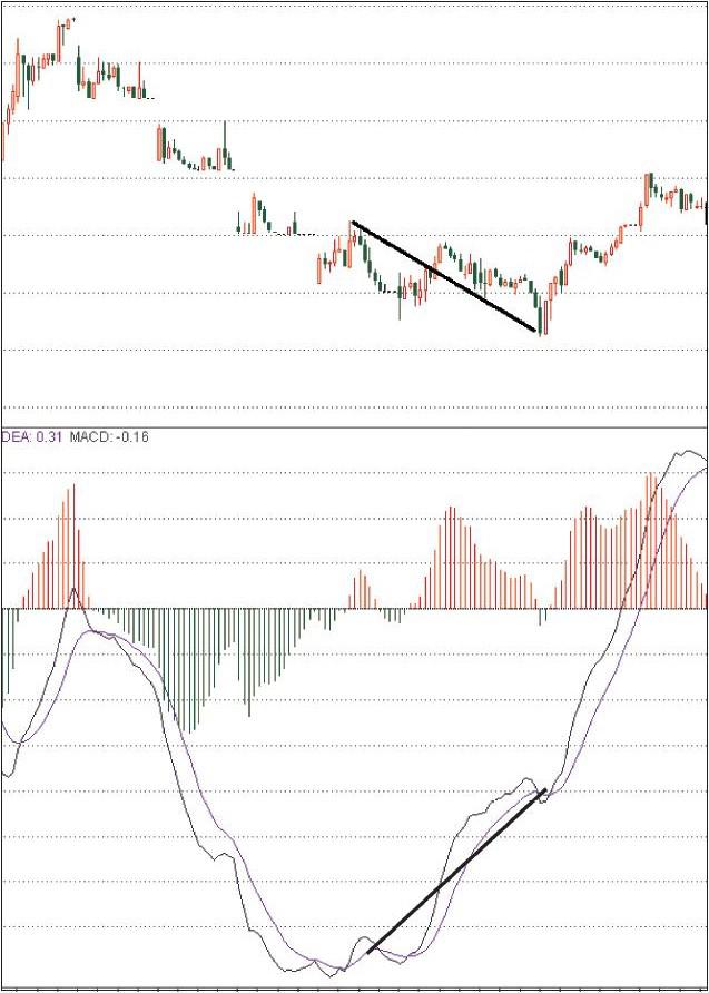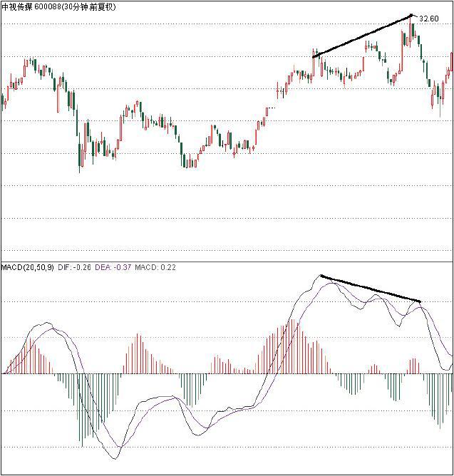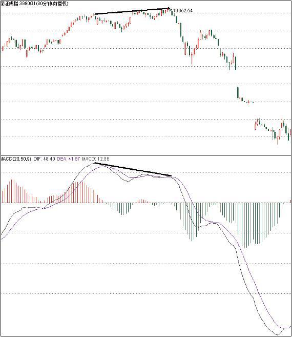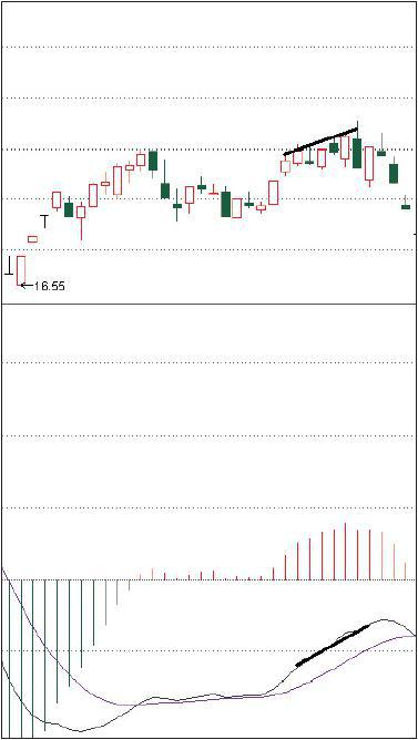 图1-22是这段时间的日K线和MACD图,在这个周期上并未出现背离。