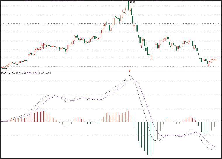 另一个经验法则是:两条快慢线终究会穿越零轴,即任何股票的变动规律都是从牛市转入熊市,再转入牛市的起伏变化,只是牛熊转换的周期不同。这个法则可以结合K线和20日、30日、60日移动均线的关系进行判断。如果只是价格调整而不是市场牛熊转换(无论中短期还是中长期)