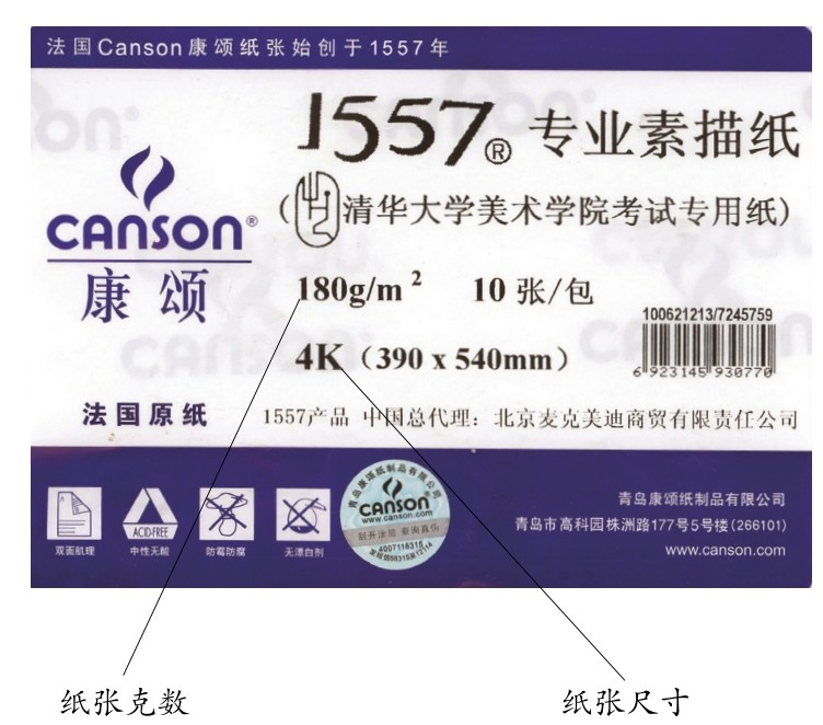 本书使用的是康颂180g素描纸。这种纸厚度适中,比较适合深入刻画。
