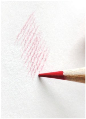 将铅笔放倒,放松手腕的力度,可以画出轻柔的颜色,适合在铺色或画明暗时使用。