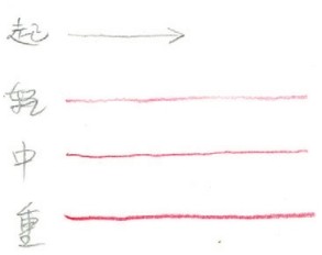 根据力度的变化,色铅笔可以画出轻重不同的线条,初学者可以先在纸上尝试画出不同重度的颜色。