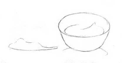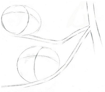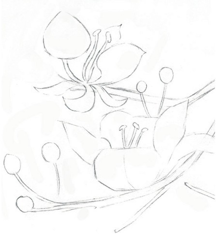 B 在上一步的基础上定出两朵主体花的位置和大小。