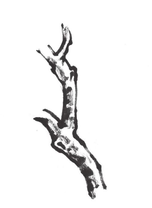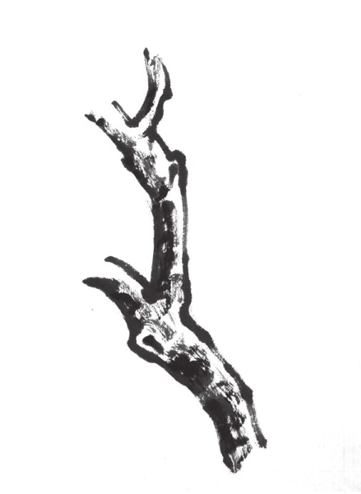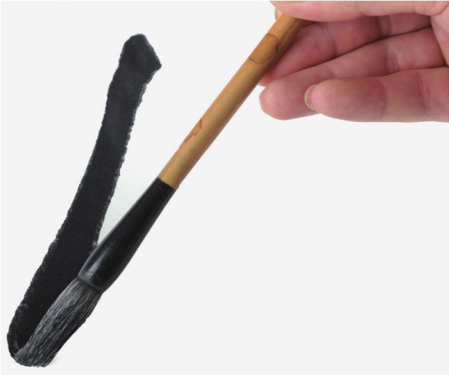 逆锋运笔,笔管向右前方倾倒,行笔时锋尖逆势向左推进,使笔锋散开。这种笔触苍劲生辣,可用于勾勒和皴擦。