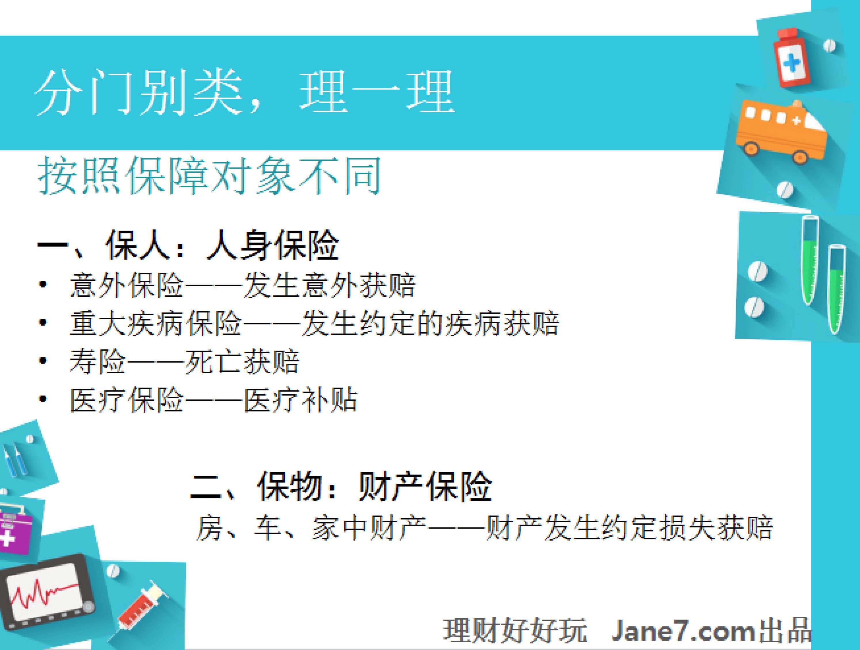 我们来简单看一下保险的种类。(注:以下寿险均指常见的定期/终身寿险)
