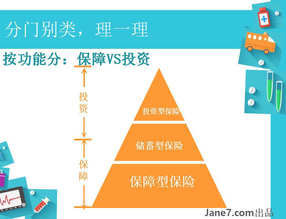对我们来说,一定需要理解的就是按照功能,也就是偏投资还是偏保障来划分不同的保险种类。