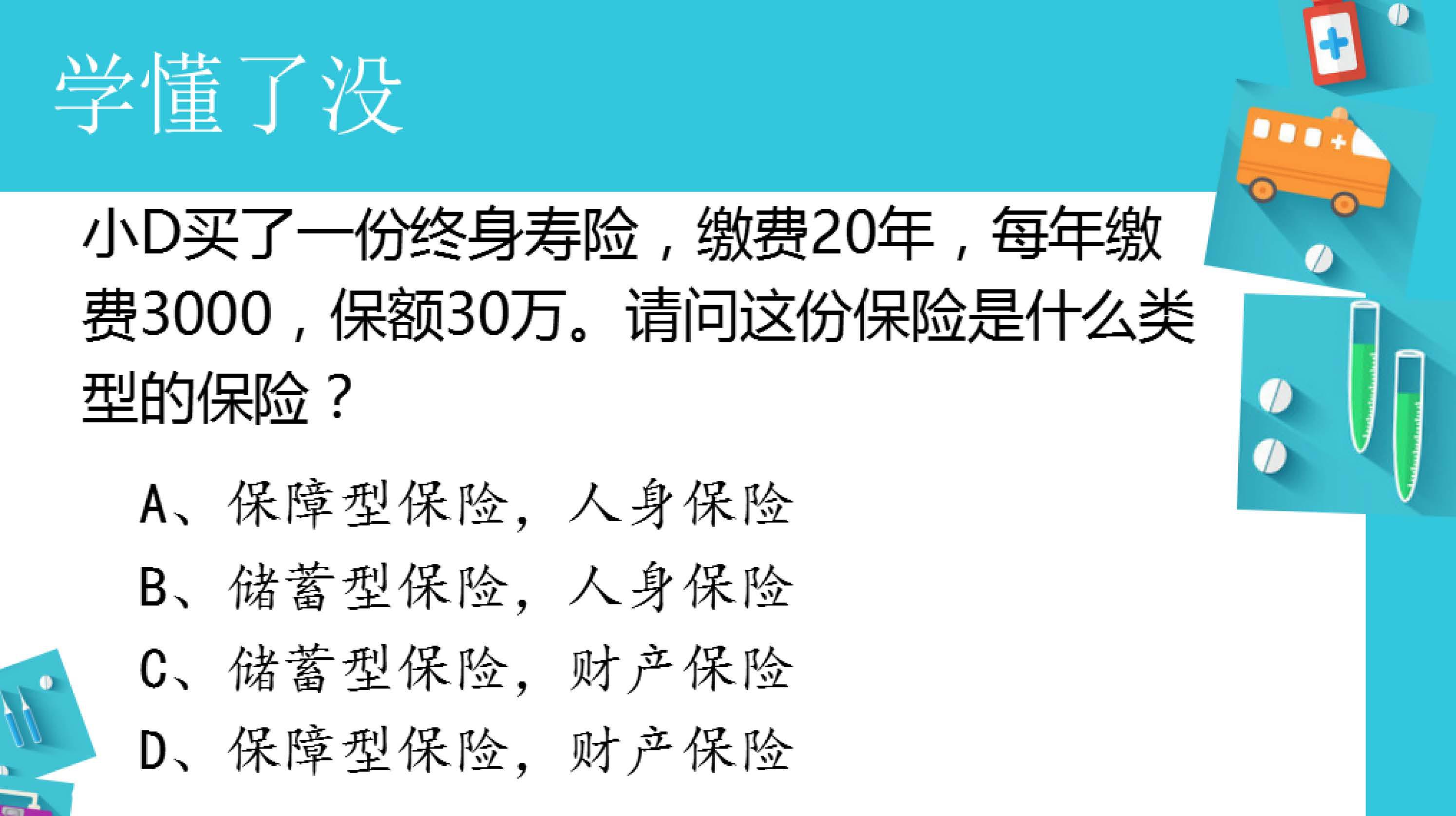 你觉得自己明白了吗?来看几个例子,巩固一下前面学习的保险知识吧!