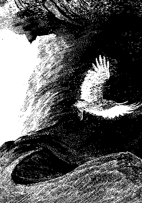 有时在半夜,木屋里突然响起主人报警式的口哨声,吹响这口哨意味着主人身陷绝境。你从睡梦中惊醒,瞪着惺忪睡眼心急火燎地从窗口飞进木屋,一看,主人安然睡在竹榻上,什么险情和猎情都没有发生。见到你破窗而入那副焦急的模样,主人只是轻轻点了点头,说一句:“看来,你还没有完全背叛我。没事啦,你回雕巢去睡吧。”