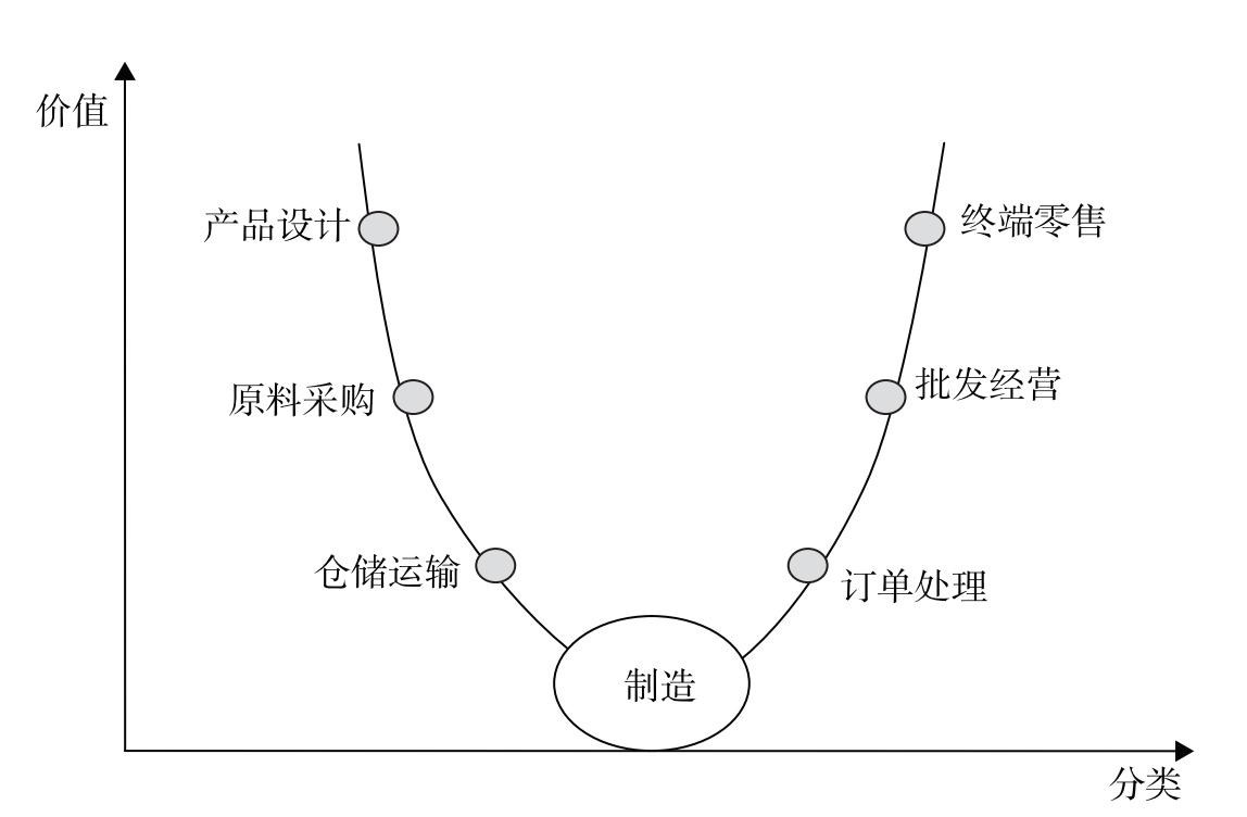 图1 传统产业链的“6+1”环节所创造的价值微笑曲线
