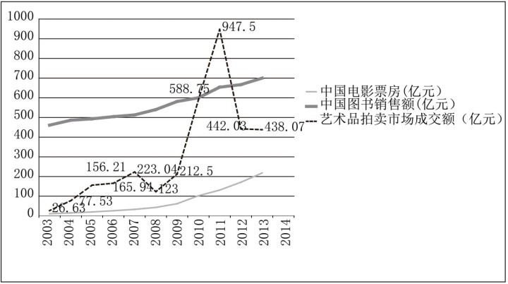 图3-1 2003 — 2014年三类文艺市场的年销售额