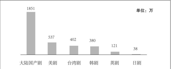我们先看图1-1,来自搜狐视频的数据,看看我们中国人喜欢看什么样的电视剧。平均单集点播数,大陆国产剧排第一,1851万,美剧排第二,537万,台湾地区的国产剧402万,韩剧380万,英剧121万,日剧38万。大陆国产剧的点播数是遥遥领先的,为什么呢?这跟不同电视剧的观众类型有关。大陆国产剧基本上都是家庭主妇们喜欢看,大学生、精英白领喜欢看美剧,而更年轻的一代人喜欢看韩剧、台剧等青春偶像剧。从观众群体来看,大陆国产剧最有市场。但是不要忘了,美剧的受众群绝大部分是本科以上学历者,以白领和大学生居多!可以说,美剧是中国现在和未来的精英们在看。