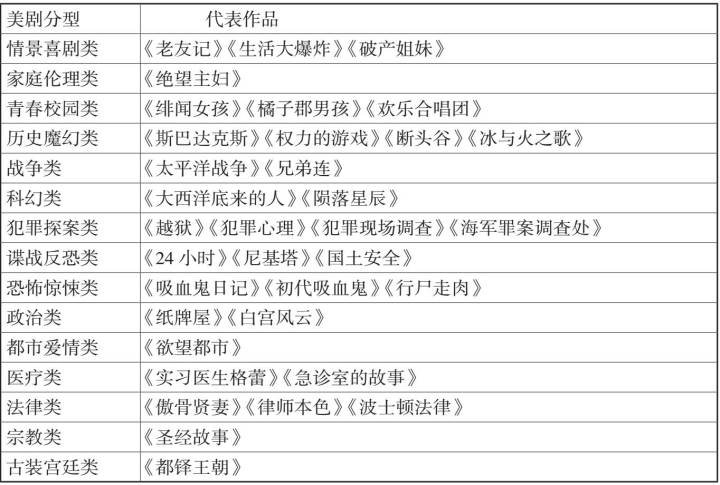 相比之下,美剧的题材类型丰富多元,各类受众可以各取所需,请看表1-1。并且美剧的故事情节非常紧凑,编、导、演人员的专业知识非常扎实。