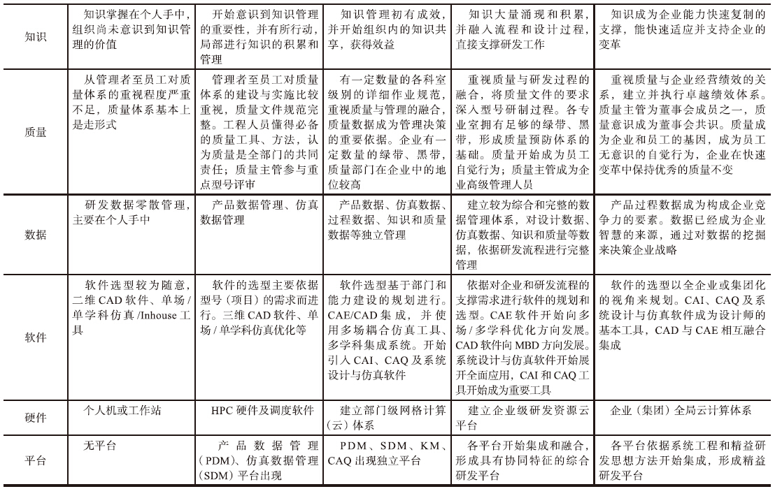 表3-2 精益研发成熟度各维度细节特征分解级别