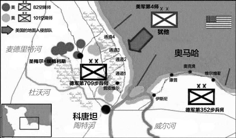 美军第82、第101空降师在诺曼底的降落点分布图