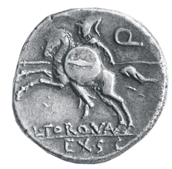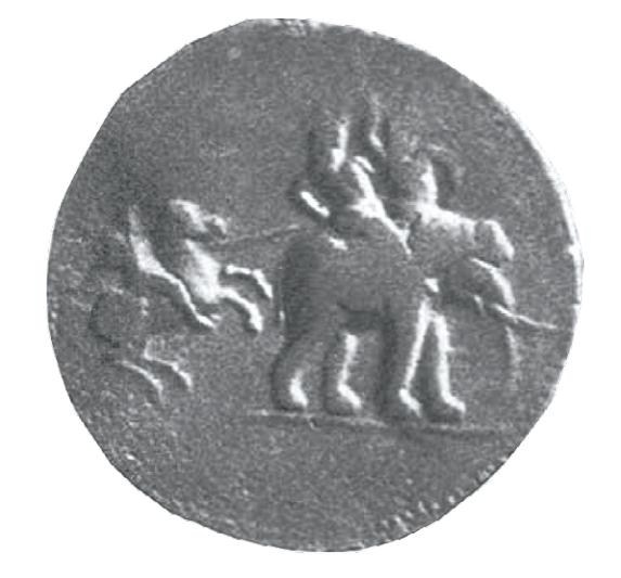◎ 图为攸克拉底德斯发行铸币上的巴克特里亚重骑兵形象。塔恩等史学家认为,攸克拉底德斯曾是塞硫西帝国的行省总督,巴克特里亚与塞琉西具装骑兵出现的孰先孰后至今仍无定论。