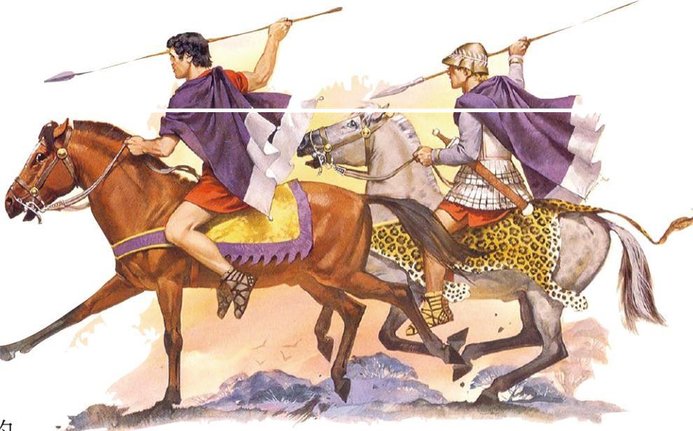 ◎ 左边为出猎装束的色萨利骑兵,右边为色萨利骑兵军官。