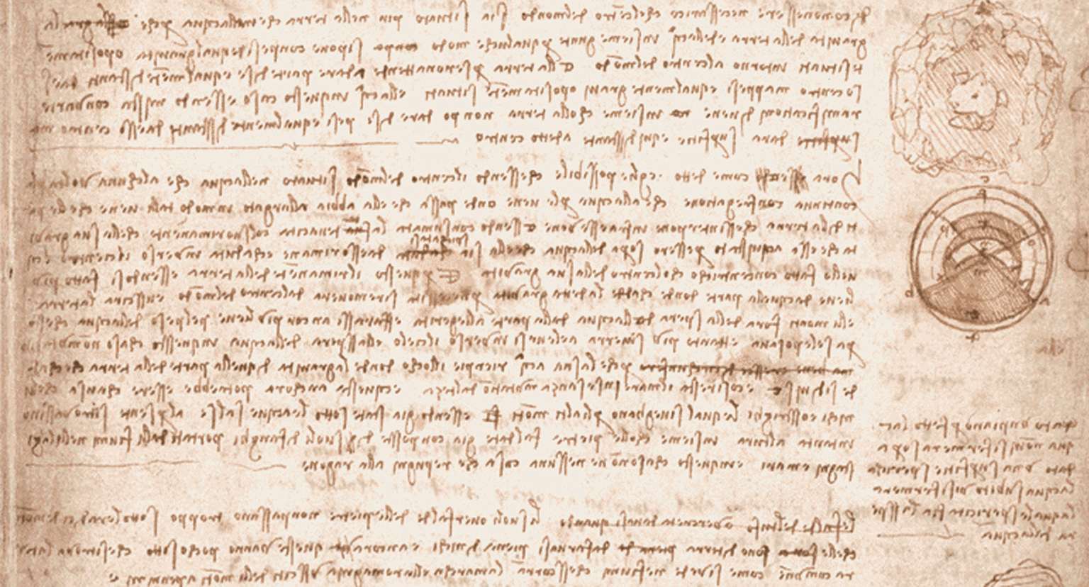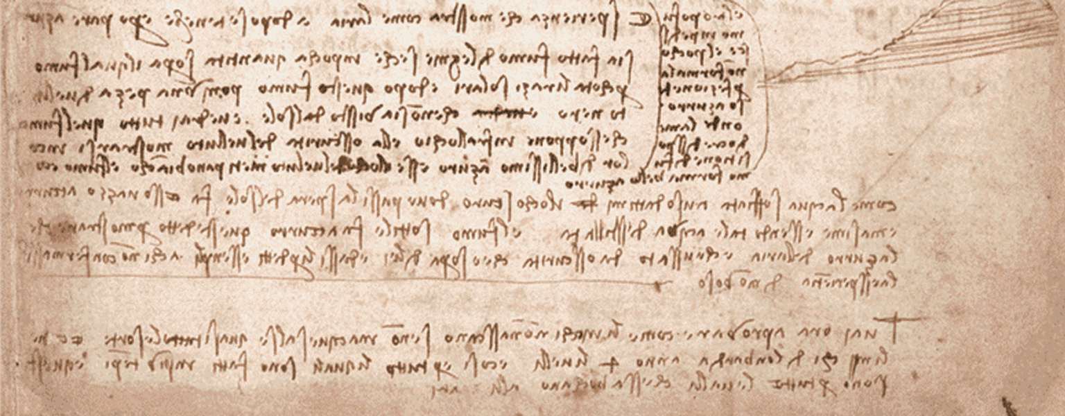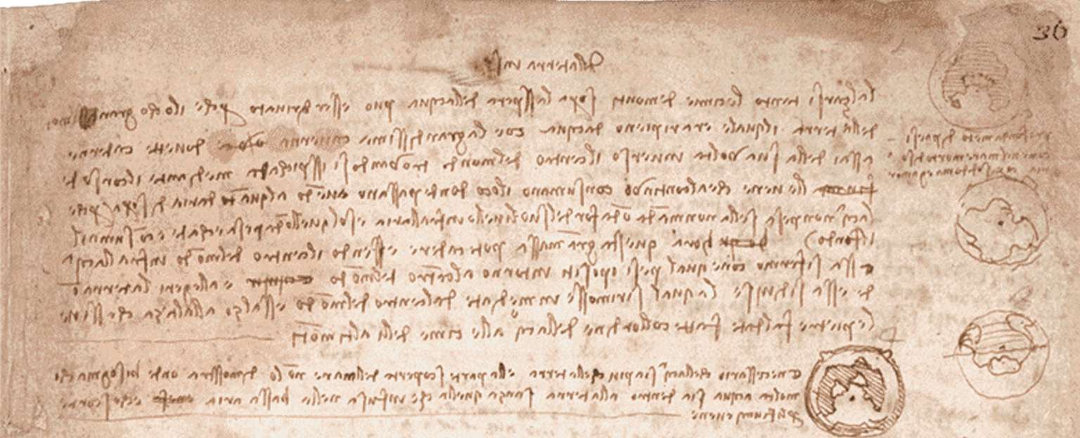 在此有一个前提,当时普遍接受的宇宙四元素是火、水、土和空气。而在达·芬奇的认知里,中心是土,然后是空气、水,最外层是火。