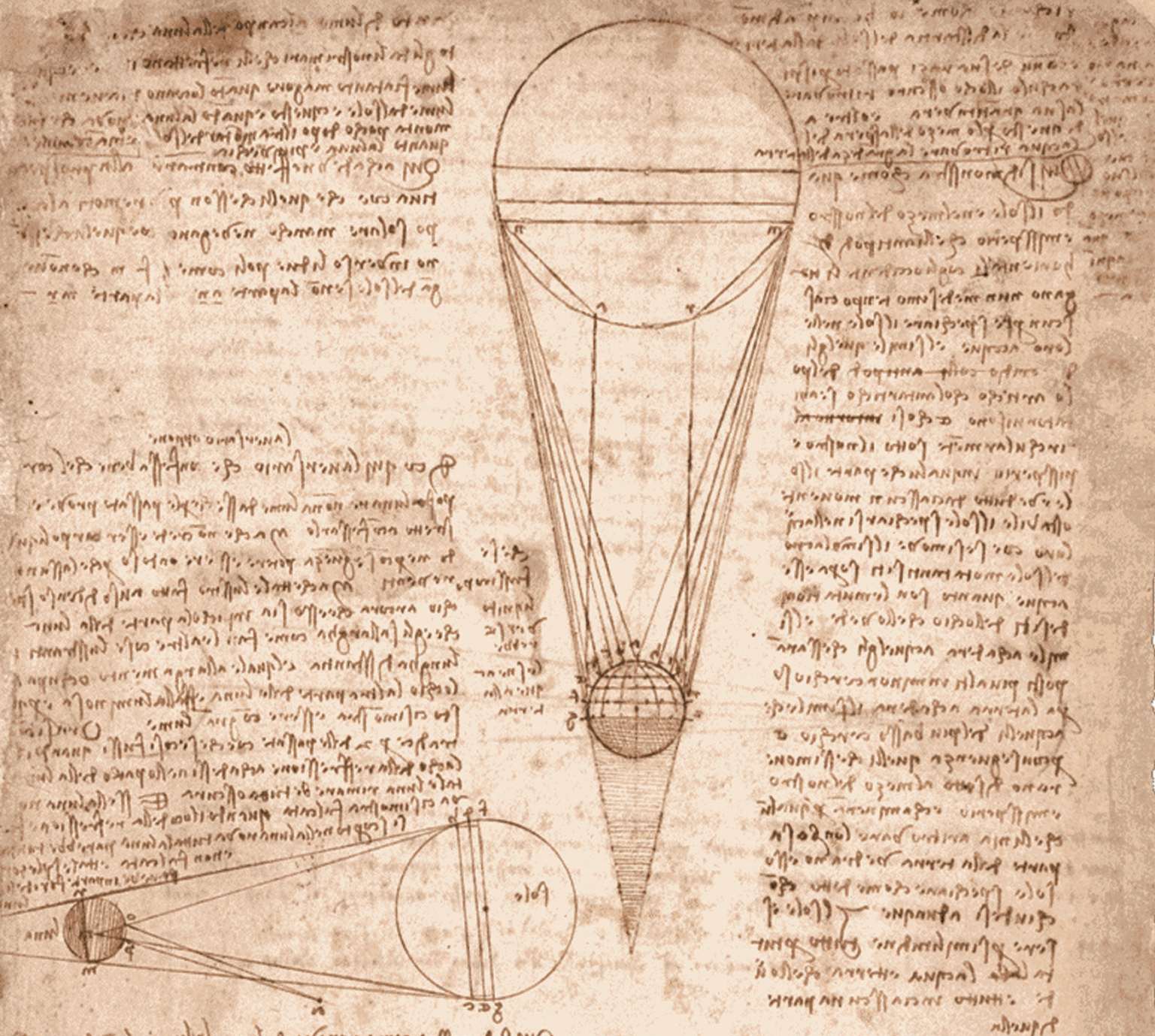 这篇图示在这一册手记中非常出名,因为其中的图案绘制了太阳、地球和月亮之间的关系,展现了中世纪时期宇宙科学的相关知识。在这一篇手记里,达·芬奇讲解了月球怎样发光,以及为何月球的光亮低于太阳。并且从正反两方辩论月球是否反射了太阳的全部光亮。