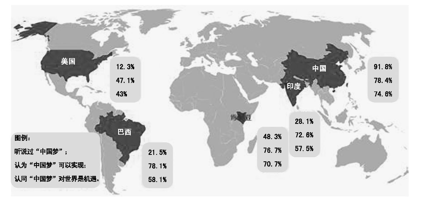 注:图中所示中国比例为“中国受访者认为‘中国梦’与其他国家人民梦想没有相通性的比例”。