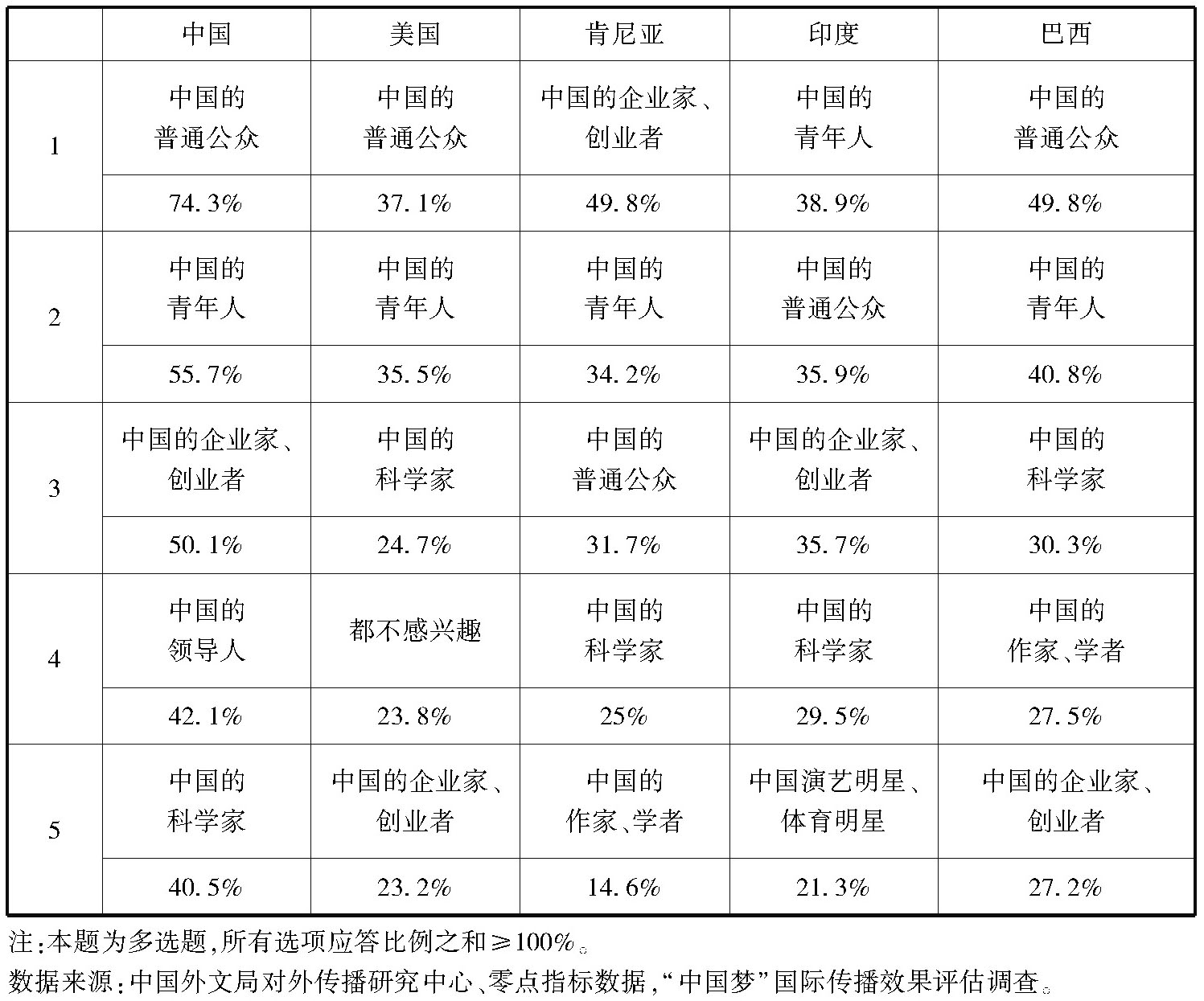 表1 各国受访者普遍对中国普通公众与青年人的梦想故事更感兴趣(N=3330)