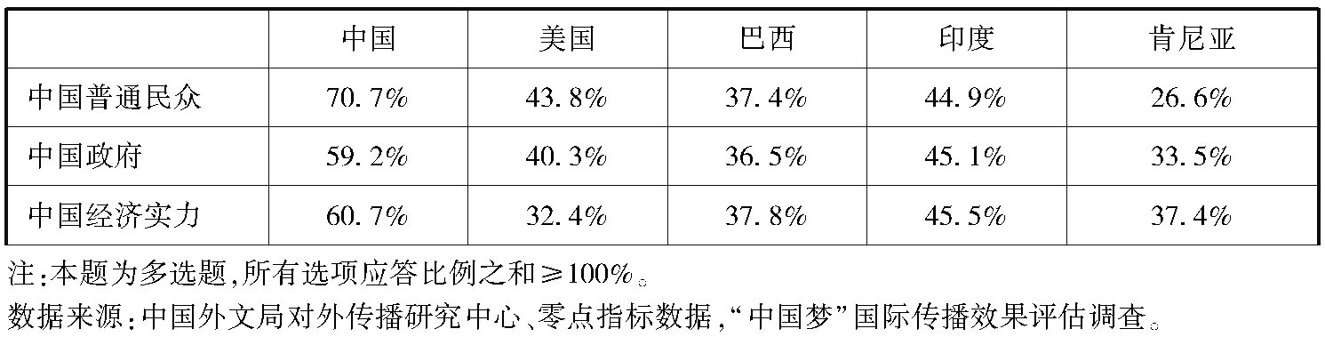 数据来源:中国外文局对外传播研究中心、零点指标数据,“中国梦”国际传播效果评估调查。