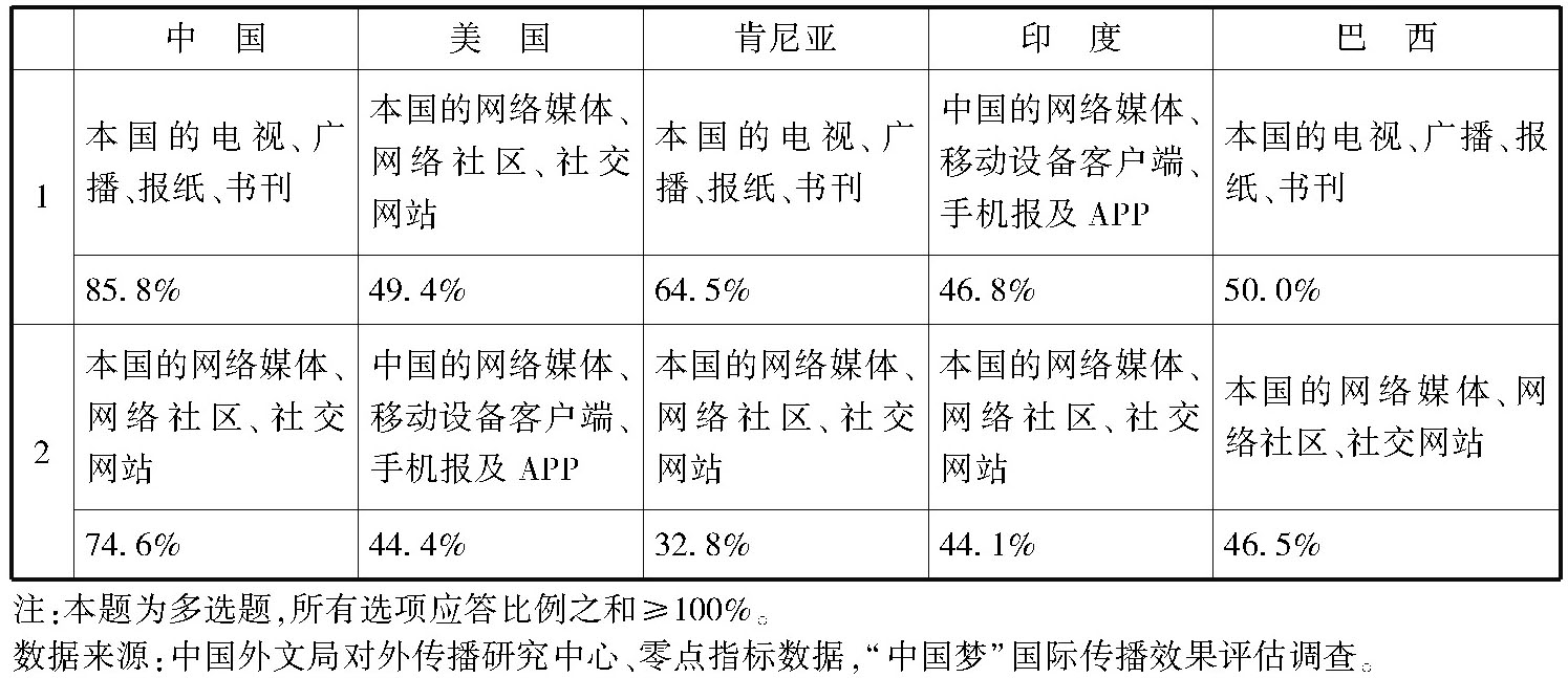 值得注意的是,中国媒体在“中国梦”国际传播中的影响力,超过在其他话题上的国际影响力:约有25%的受访者认为中国的传统媒体、网络媒体和移动媒体是他们了解“中国梦”的主要信息来源,这个比例超过在受访国的其他国家的媒体(10.8%)。