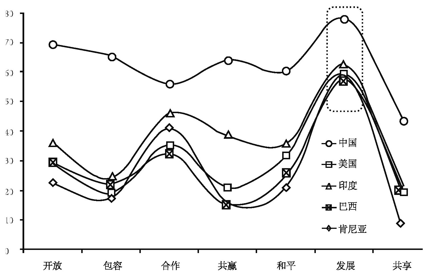 图2 “发展”是各国受访者公认的“中国梦”的核心特点(%)(N=3330)