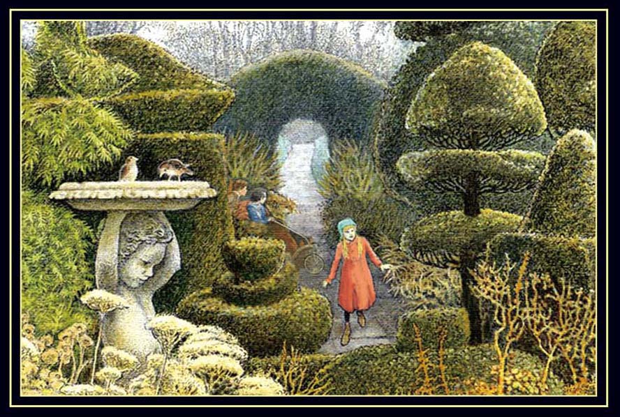 玛丽不由自主地被她的话所吸引。听起来似乎所有都和印度不一样,所有新鲜事物都非常吸引她。可是她不愿意把她的兴趣显露出来。那正是她不高兴、不听话的做法之一。所以她依旧一动不动地坐着。