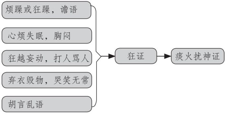 (3)痰与火结,痰火扰心——躁狂谵语,心烦失眠,哭笑无常,胡言乱语,甚或狂越妄动,打人毁物,不避亲疏;