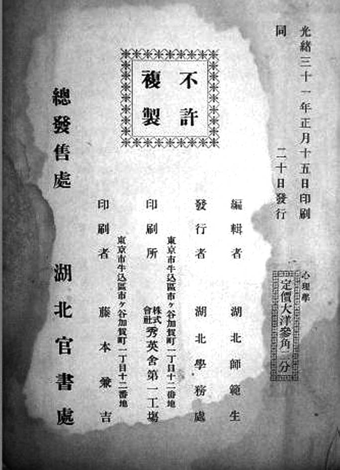 图1-2 湖北师范生编辑并于1905年1月15日印刷的《教育的心理学》