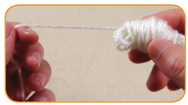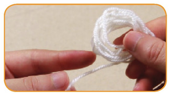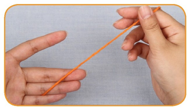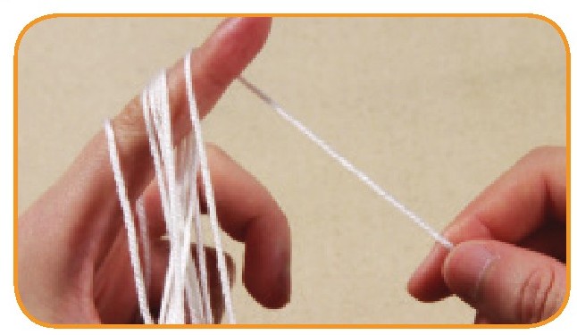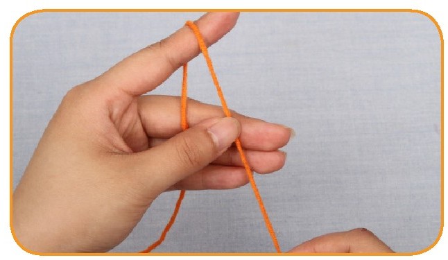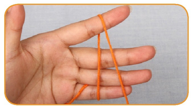 2. 然后将线由食指外侧绕至食指上,大拇指及中指捏住线头,保持中间有6~8cm的线。
