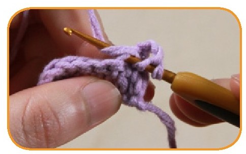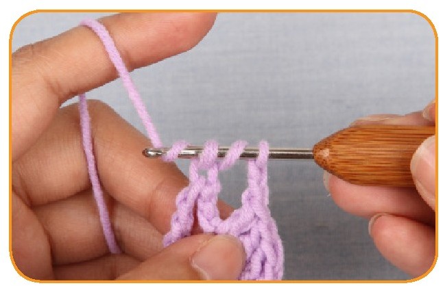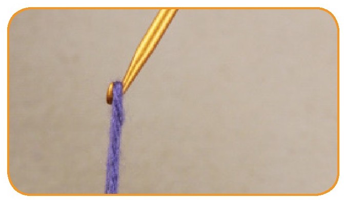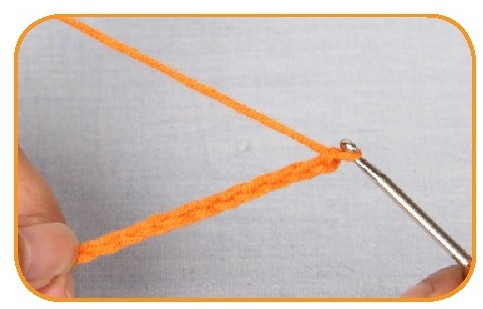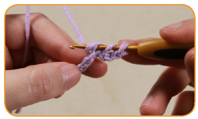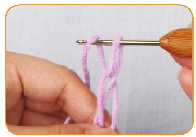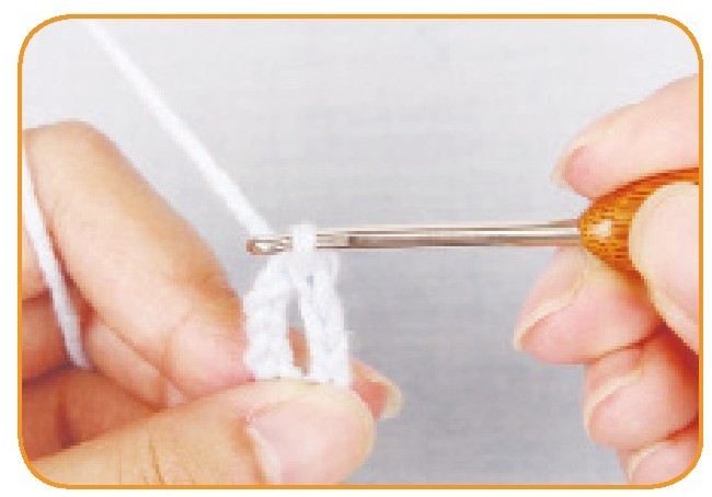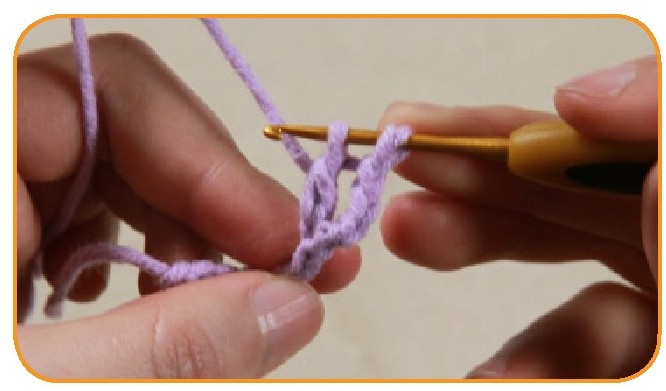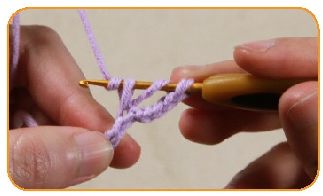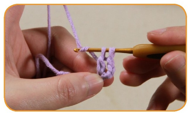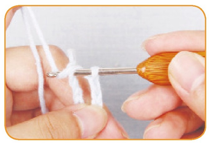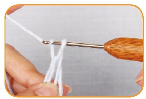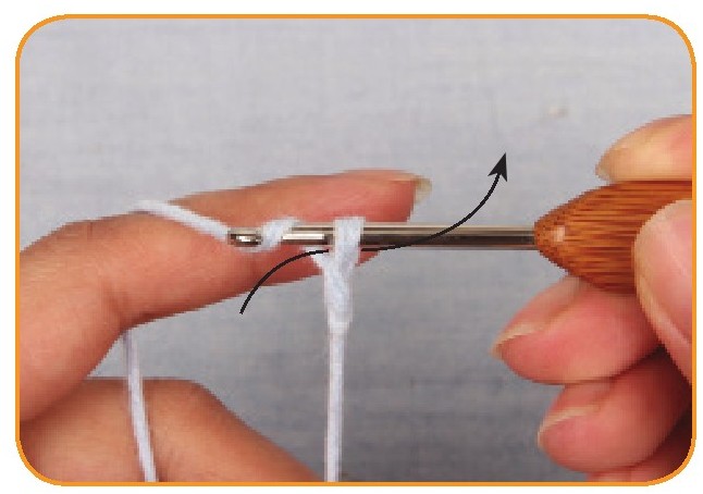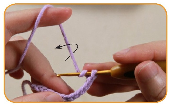 1. 钩立针的3针锁针,线按箭头所示挂于钩针上。
