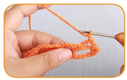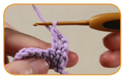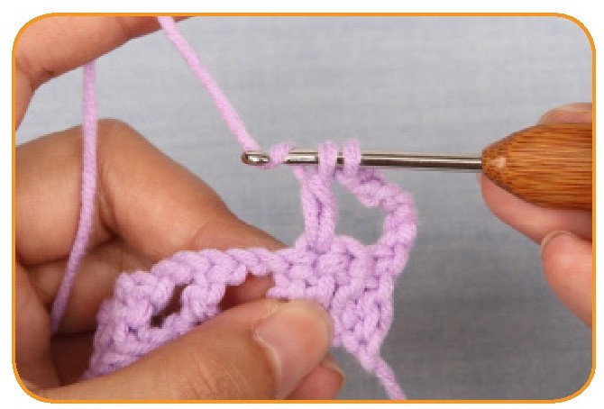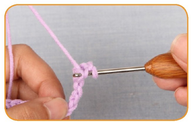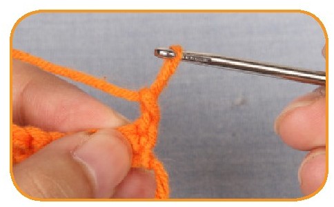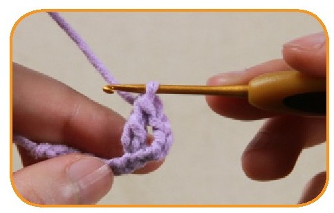 2. 由第5针锁针的里山插入钩针,钩针上绕线。