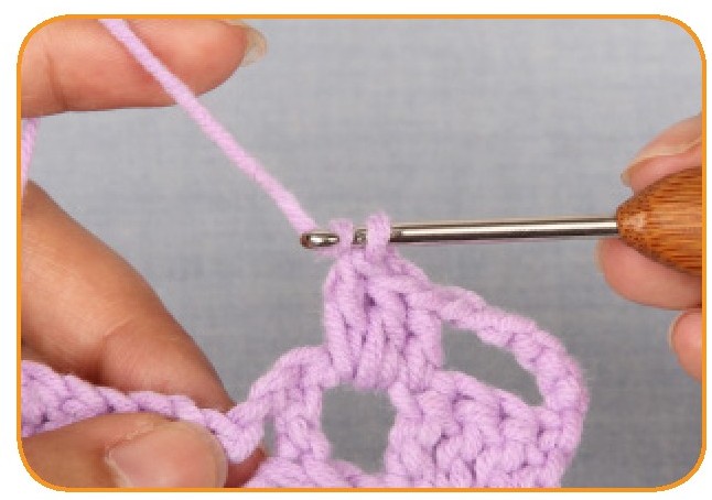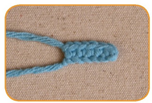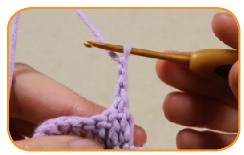 8. 左端是从前行立针第3针锁针的半针和里山钩短针。