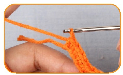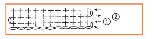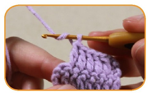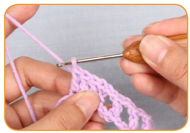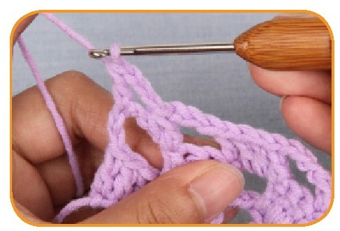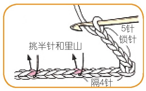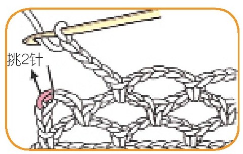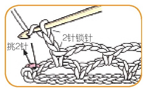 2. 挑针的方法是从起针行锁针的半针和里山挑2线编织。
