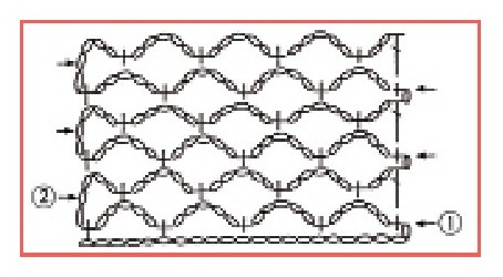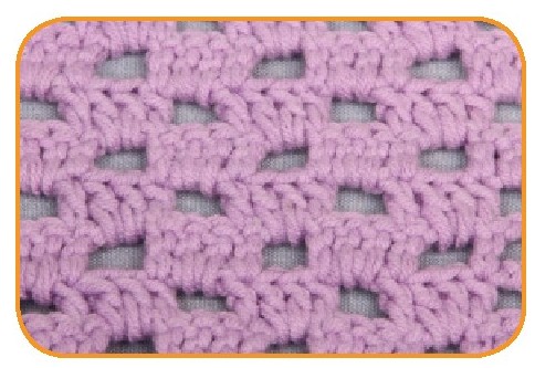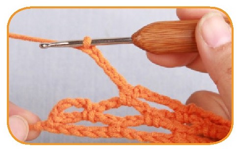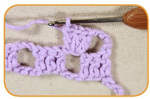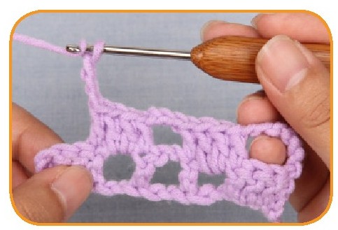 由于钩织的成品呈现网状因此这种钩织方法叫网状钩织,由锁针和短针组合而成的。起针时使用和织片相同的针号或大1号的针钩锁针,然后换回钩织片的针号钩立针的锁针,第1行的短针是由锁针的半针和里山挑2线钩出。由于网状格间空间较多,网状花样以此方法挑针最安全。