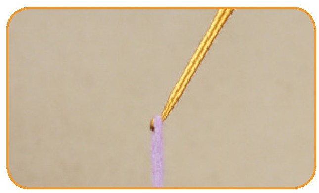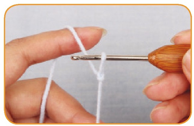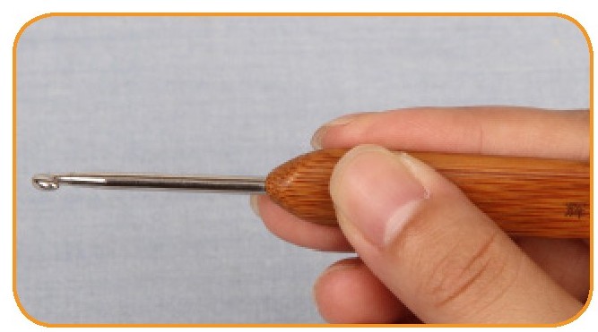 大拇指和食指轻轻地握住钩针,中指放在针头上。