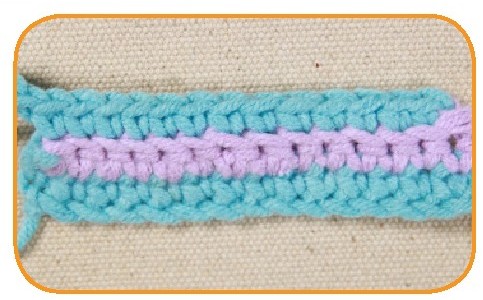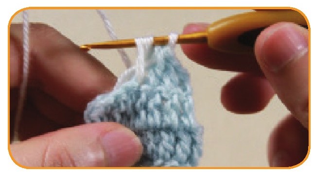 3. 将原钩织线和新加的线一起钩织,将线头塞进去。