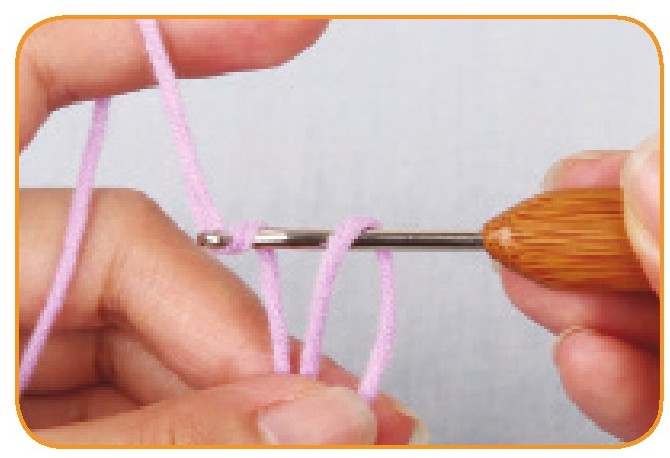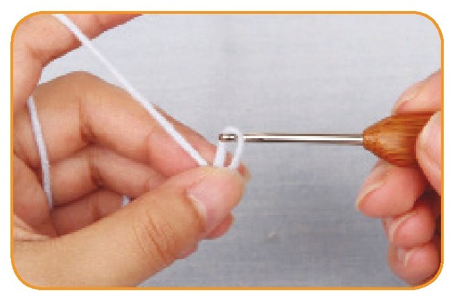 3. 左手抓住轮状线圈,如图所示,钩第1针的立针。