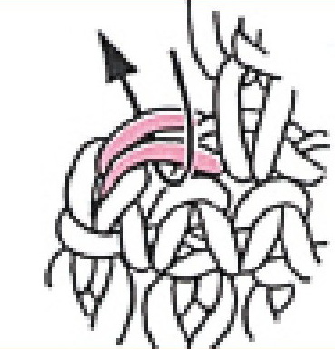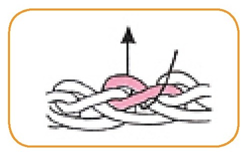 这里可以是在前一行针圈的半针中或者里山,或者半针和里山挑2根线的情况。
