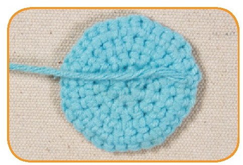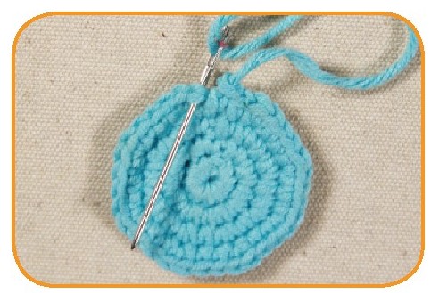 2. 留出的线头穿上缝针,插入该行第2针的短针前端的两根钩织线,并将线引回最后1针短针的针脚处。