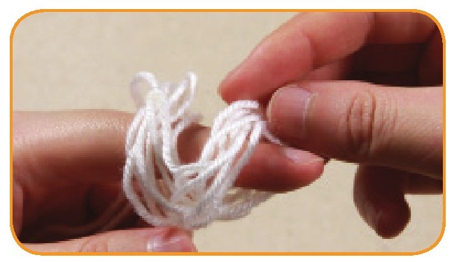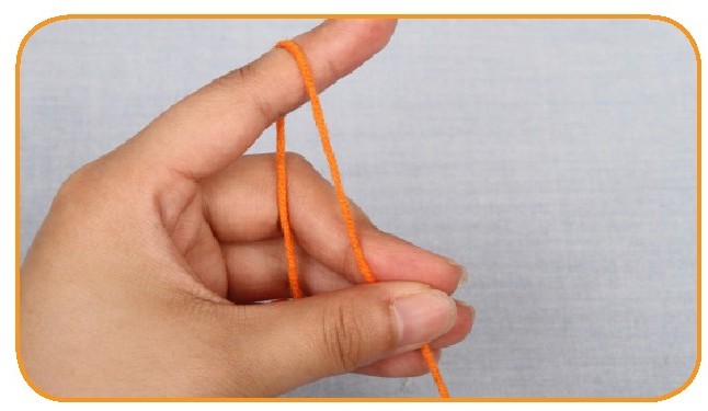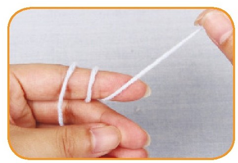 3. 钩织细线或容易滑动的线时,线在小指上绕一圈。