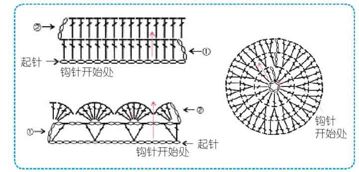 适合由中心往外侧织成圆形或图案花样的起针方法。