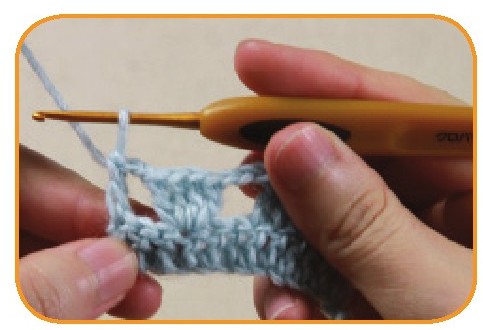 11. 从前行的针头挑2线编织。立针的锁针由于算是第1针,所以接下来从第1行的第2针挑针钩织。