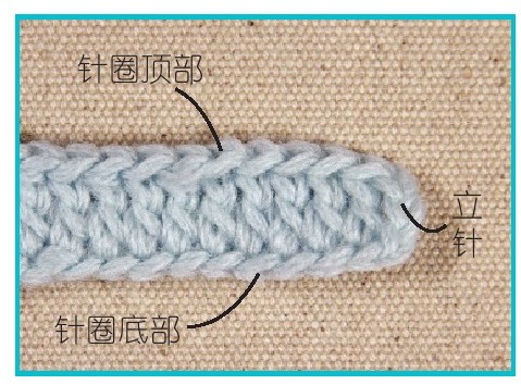 短针是钩织针法中最矮的针。短针的立针1针锁针并不算1针,所以立针的锁针就不需要台针,第1针起即钩短针。第1行的钩织方法,一般是从锁针的里山挑针,为的是不破坏锁针的形状,能够形成很漂亮的端线。