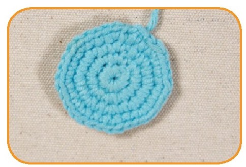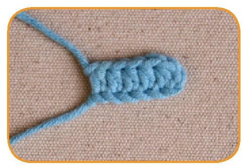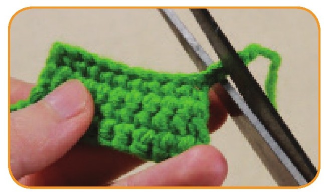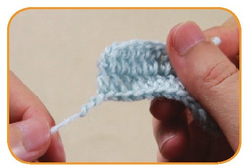 1. 钩织完最后的短针之后,如图,将线头引出,拉长钩针上的线圈,留出一定的长度,剪断。