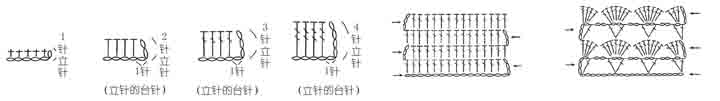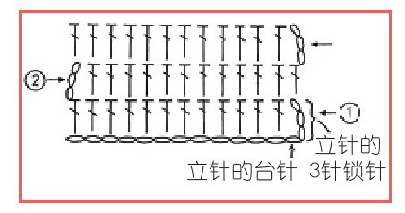 长针是短针的3倍高度。立针的3针即算成当行的第1针,从第2针起才钩长针,当然起针时的立针的针台也是必要的。从起针的里山挑针编织是最漂亮的。