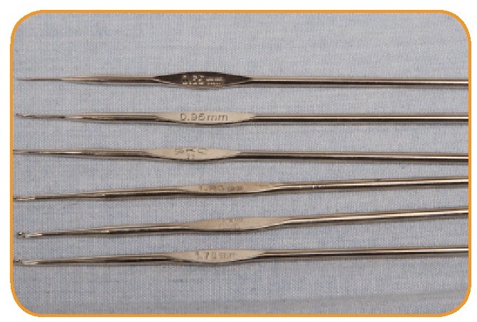 2. 蕾丝针:比一般的钩针细,主要是用来钩织蕾丝线的钩针,数字号码越大钩针越细。