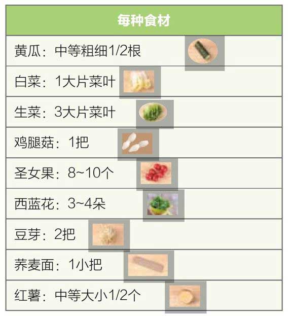 罐沙拉所用的食材较多,对每种食材都需要进行称量,最好能在家里备一台电子秤。但是如果每一种食材都过一遍秤,也是件非常繁琐的工作。所以我们推荐一种相对简单的食材称量法,即以100克为标准,先看看常见食材如何估取。